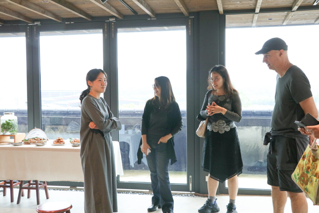 活動當日亦舉辦交流茶會,提供新埔百年老店的竹塹餅、米糕,搭配當季柿餅、柿葉茶及由藝術村自種的萬壽菊薄荷水,讓訪客在品味在地風土之餘,進一步感受藝術駐村的豐收成果。