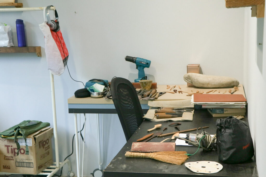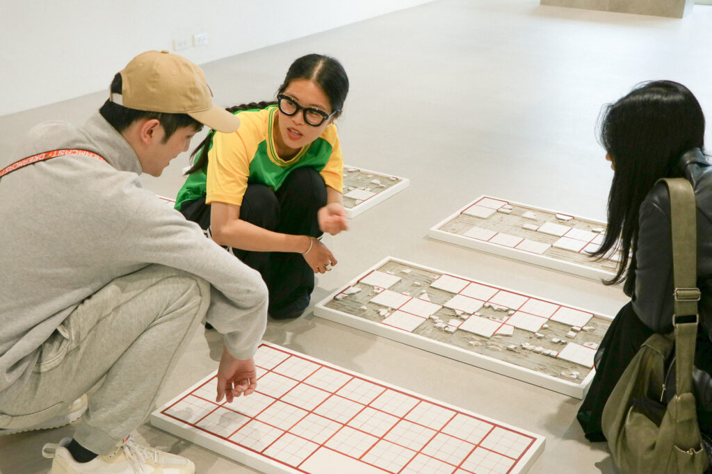 三位藝術家透過展區動線與開放工作室的方式,分享各自的創作脈絡與駐村期間對新埔的深刻感知。從地方物件的細節出發,探討日常與記憶之間的連結,從水溝蓋上的新埔板條、到生活中吃到的在地食材、春暖後滿摘的豐富果實,讓參與者深刻感受到藝術家於地方駐村的熱情,同時藉由工作室的開放交流,藝術家邀請大家實際的走進他們的創作宇宙,啟動了駐村計畫的源頭。