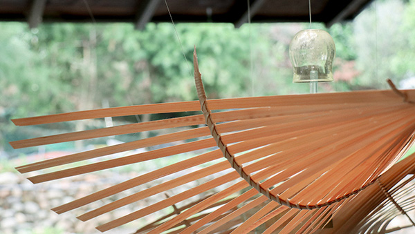 風的流動、池塘的水波、空氣的光影——這些難以捉摸的自然元素,透過玻璃的折射、竹編的紋理線條、風聲與材質的碰撞,轉化為具象的藝術呈現。