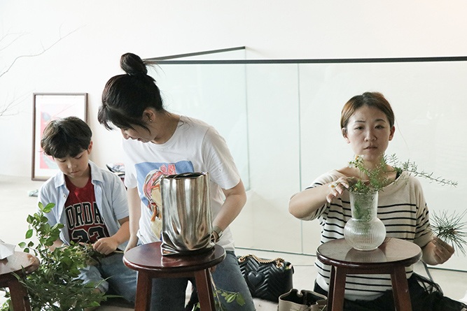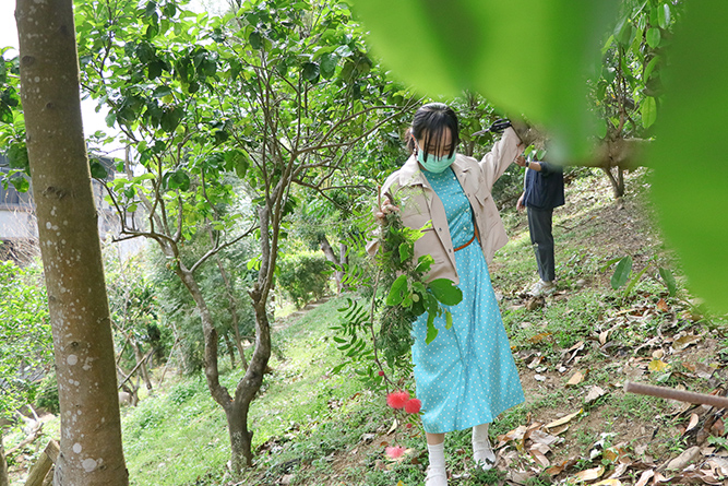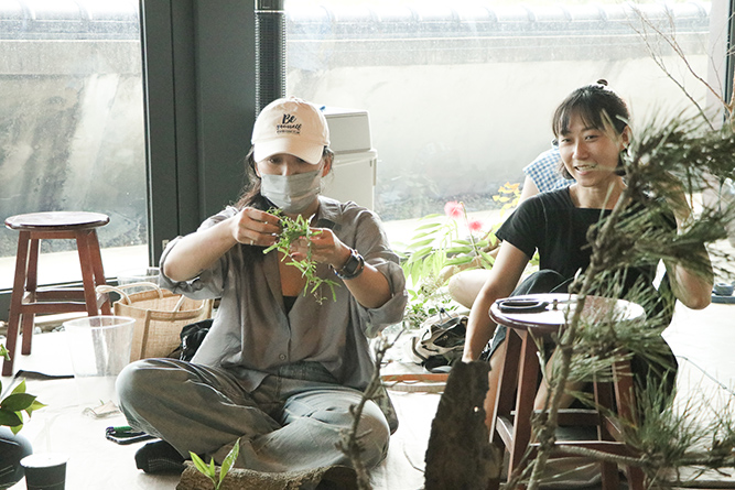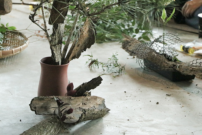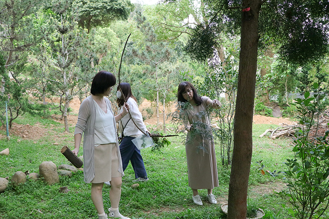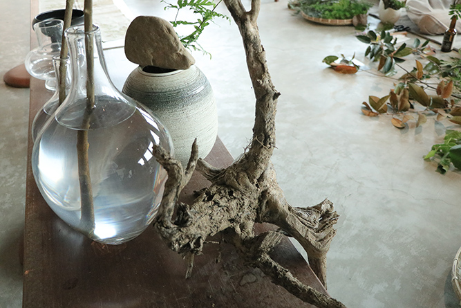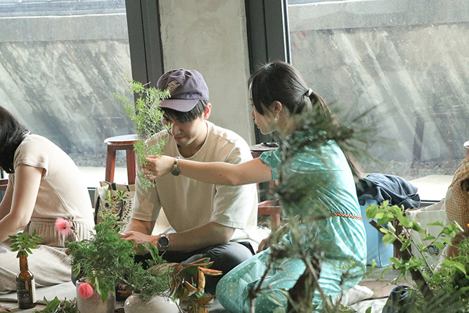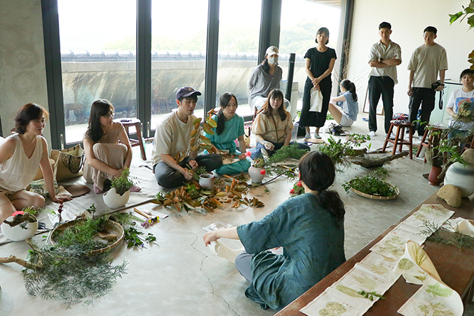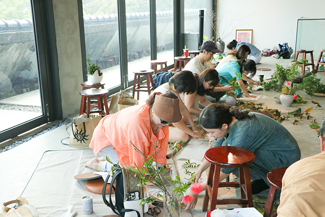老師親自帶著學員們走進戶外,依著每個人的直覺與特質,採集屬於自己的植物與素材。每個花器、每一枝花,彷彿都有了生命。