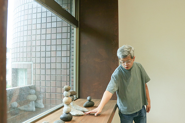 1968出生於苗栗,東海大學美術系藝術學學士、國立臺南藝術學院造形藝術研究所藝術碩士畢業,目前居住、創作於台中。